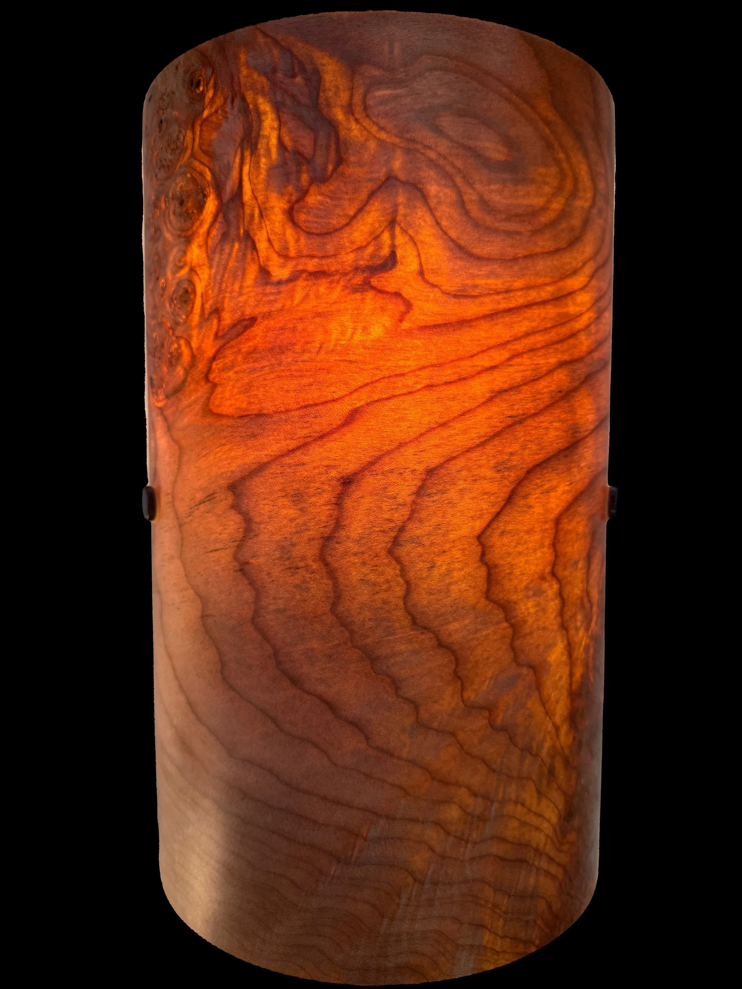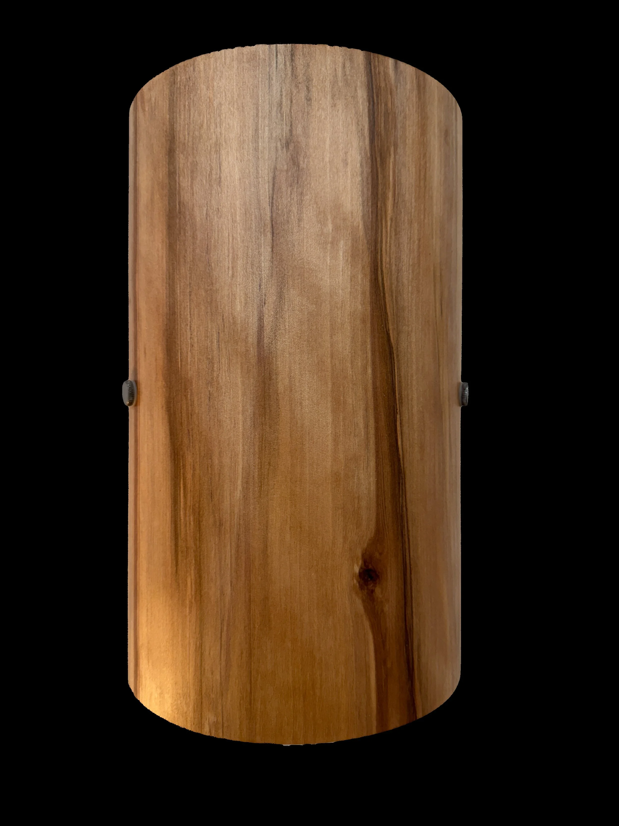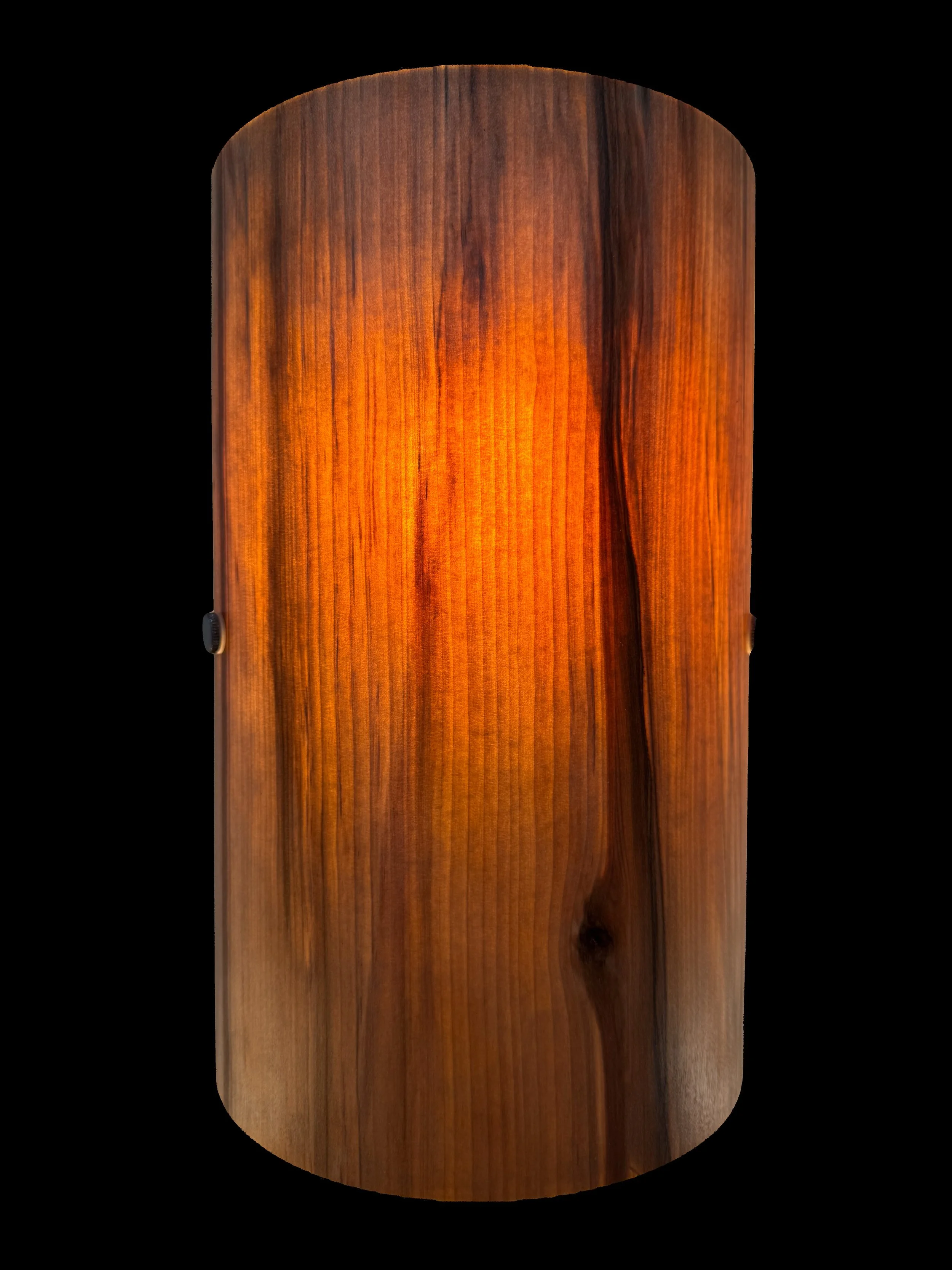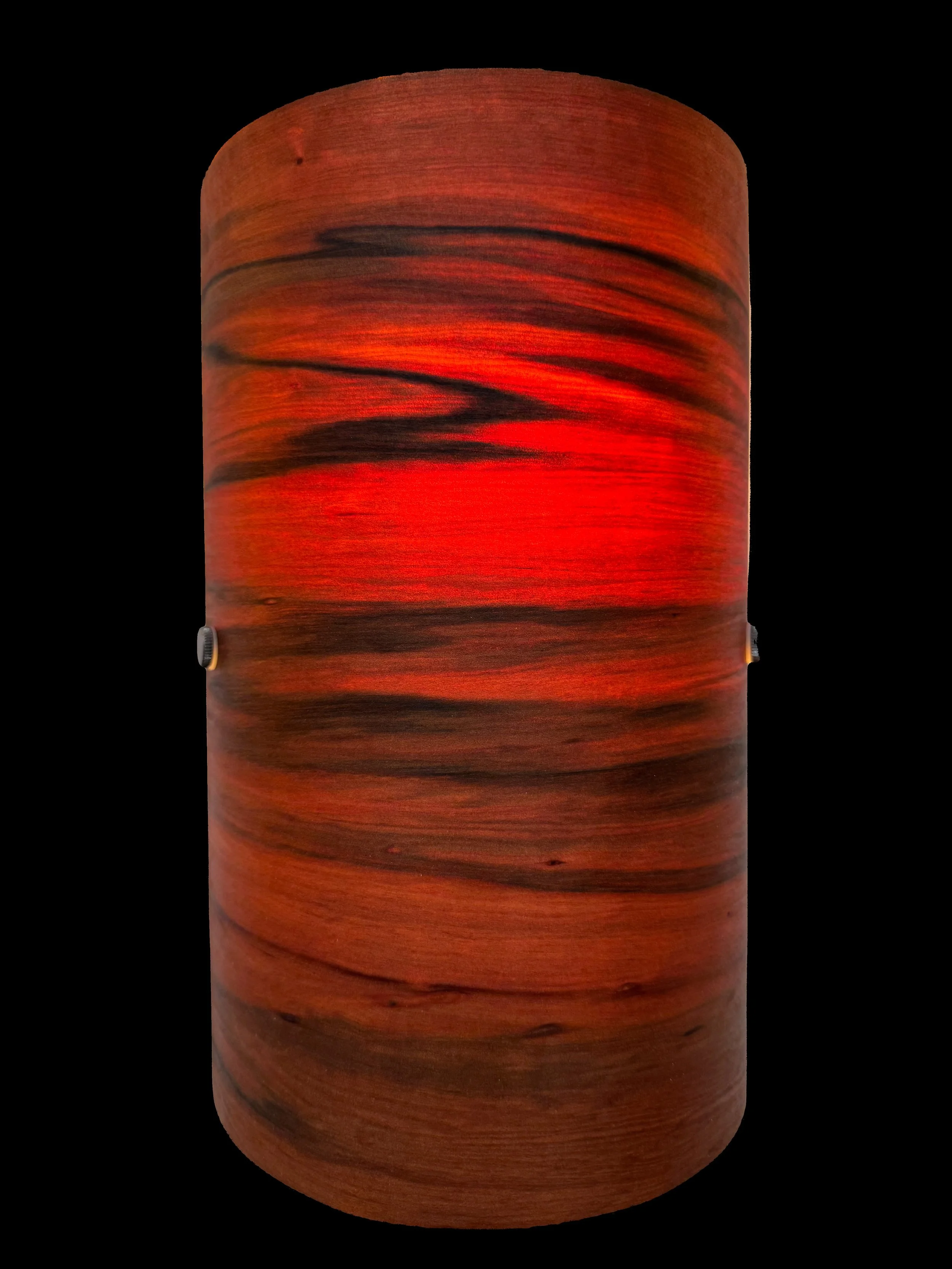 These 7” x 12” sconces feature wood veneer bonded to glass. Includes fixture with dimmable LED bulb ready to install. Other species of wood are available if you want them custom made.
