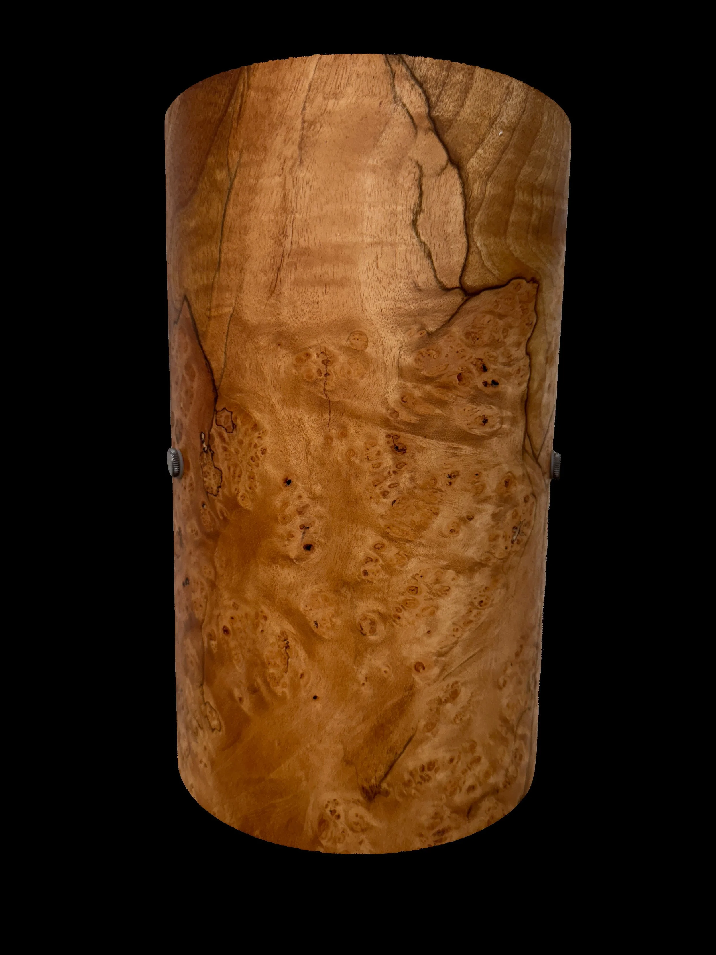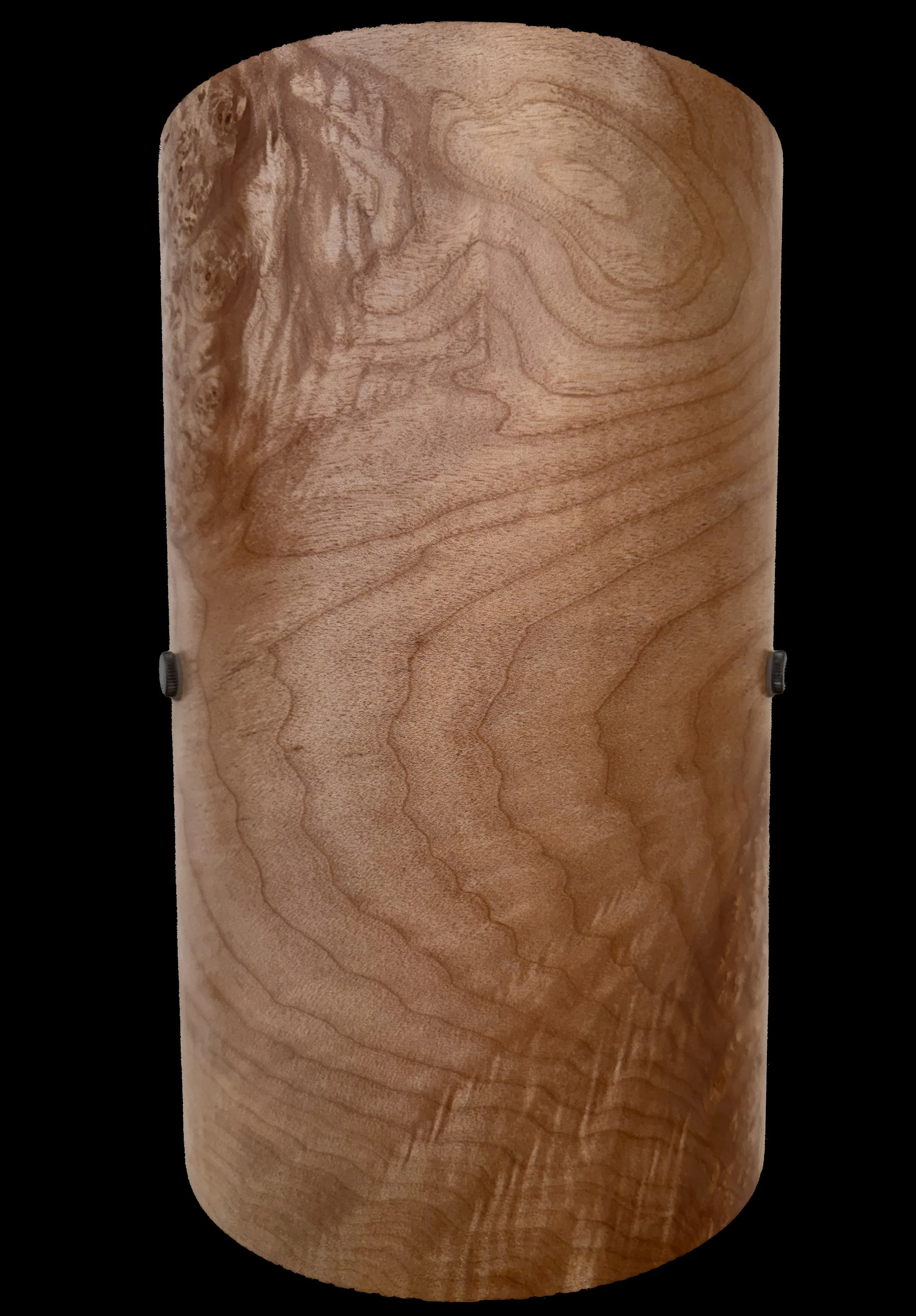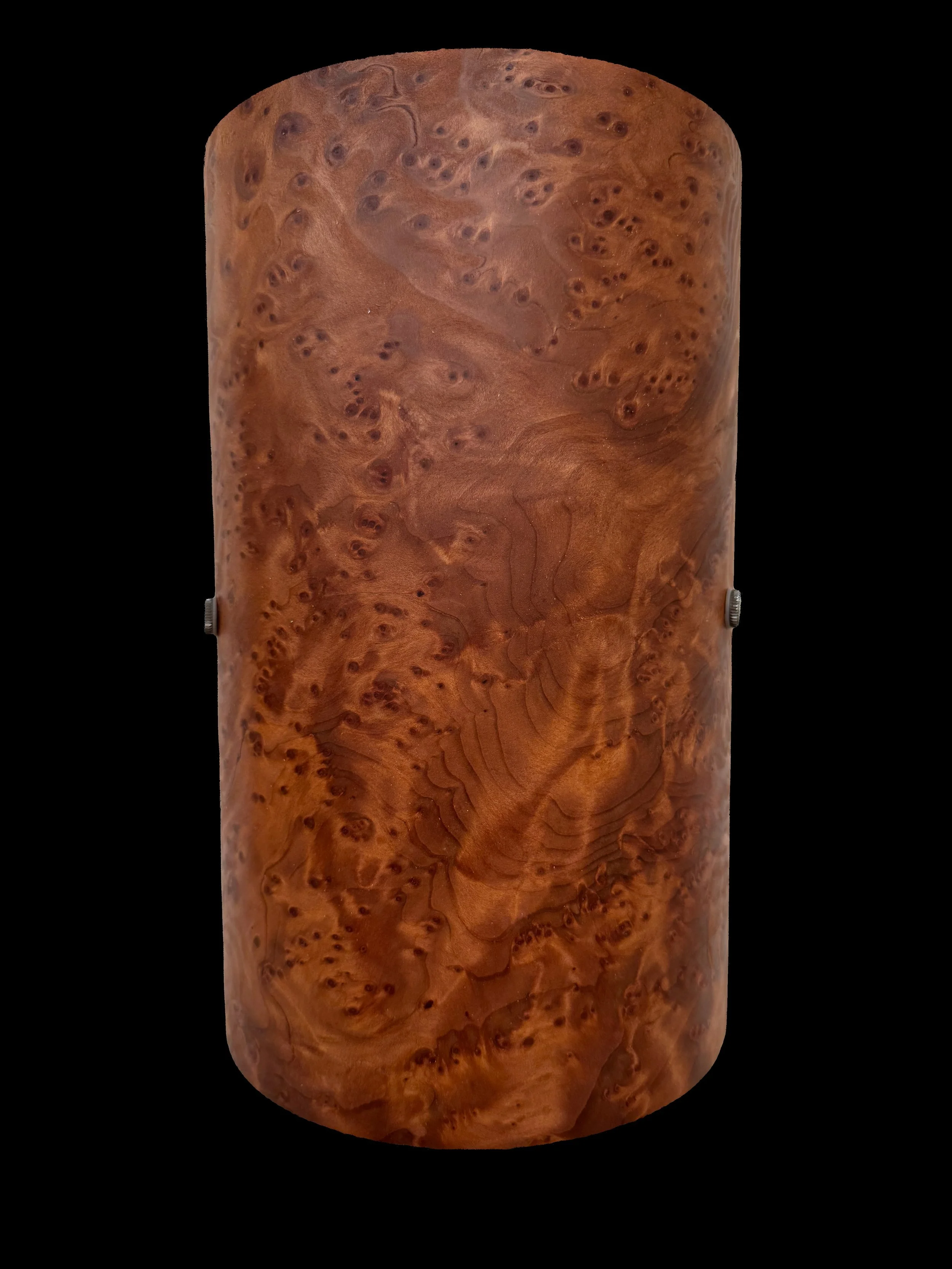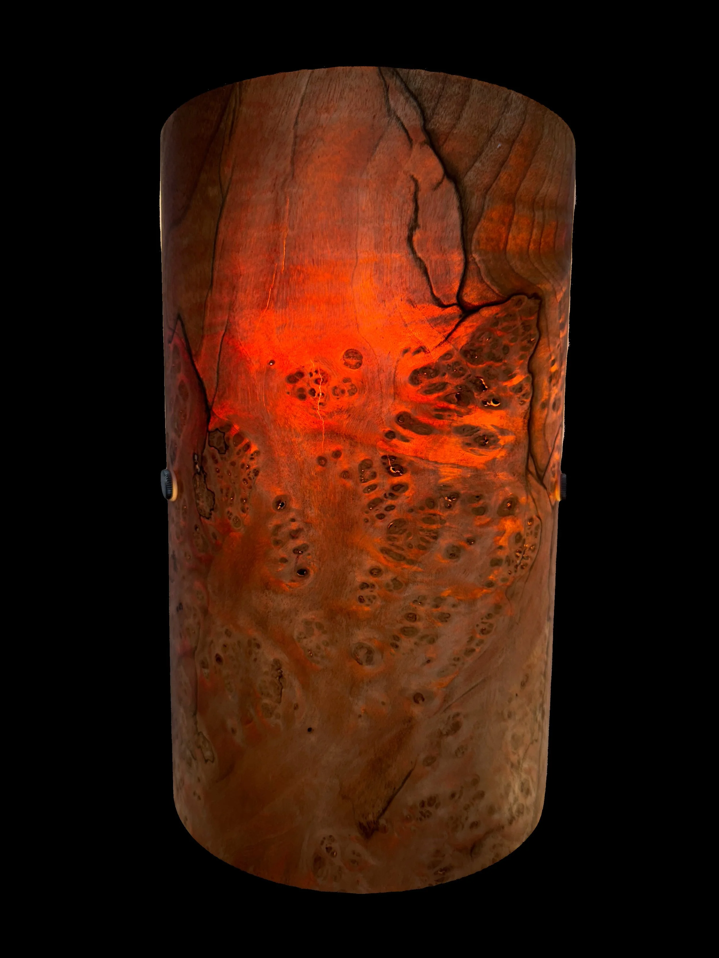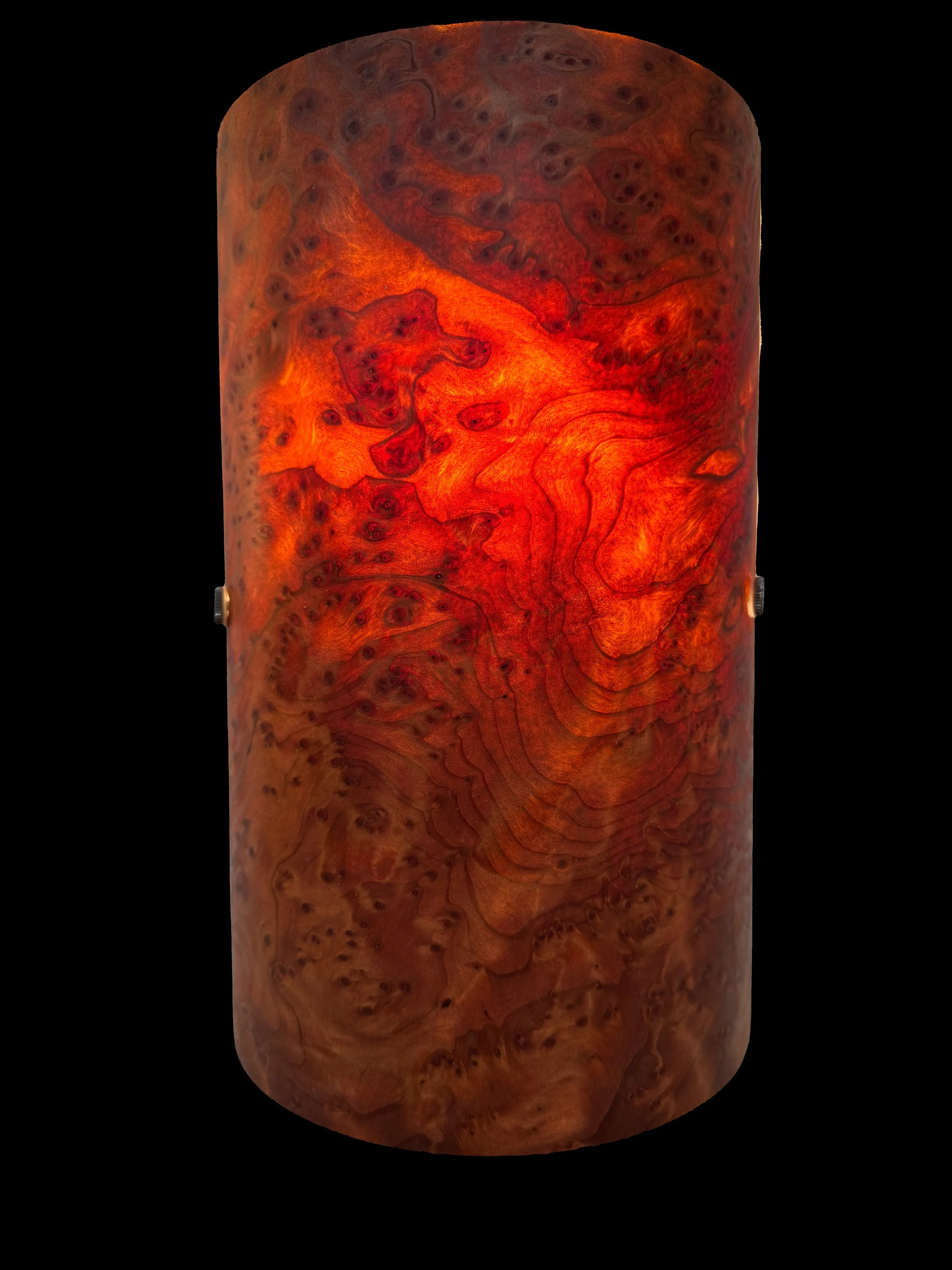 These 7” x 12” sconces feature wood veneer bonded to glass. Includes fixture with dimmable LED bulb ready to install. Other species of wood are available if you want them custom made.