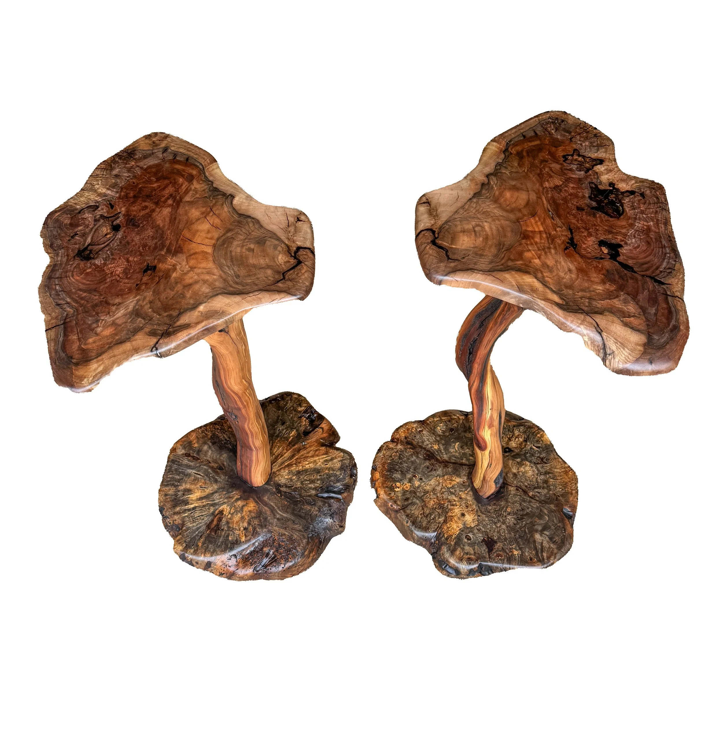 Pair of Black Walnut Burl and Manzanita Side Tables